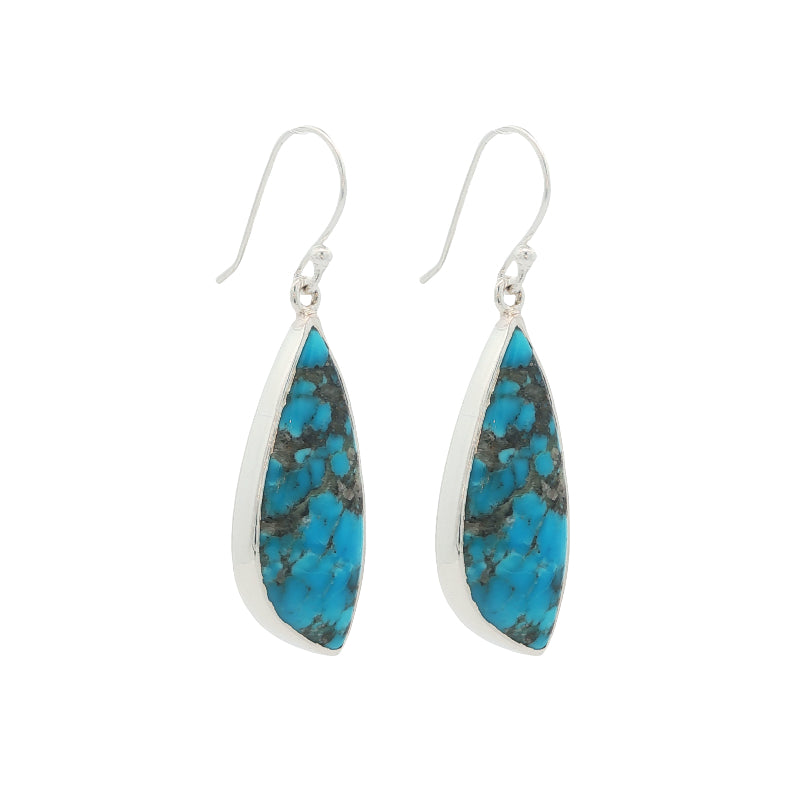 These sterling silver hook earrings feature vibrant North American Turquoise drops, showcasing striking blue-green hues in a simple, elegant design perfect for everyday wear